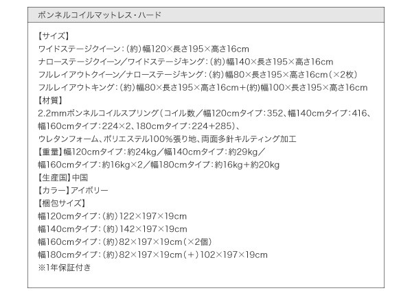 【ボンネルコイルマットレス付き 幅160cm:ナローステージレイアウト】キング ウォルナットブラウン/