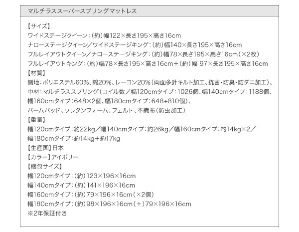 【マルチラススーパースプリングマットレス付き 幅120cm:ワイドステージレイアウト】クイーン ウォルナットブラウン