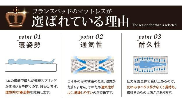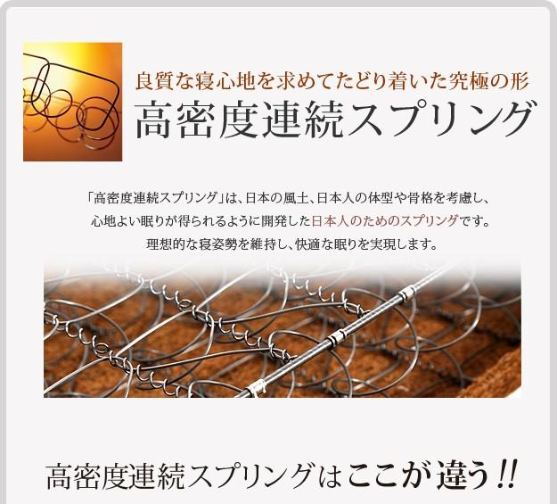 高密度連続スプリングのマルチラススーパースプリングマットレス。高密度な支持面が正しい寝姿勢を保ちます。マットレスの中では最も硬く弾力性に富み余分なへたりがない優れた振動吸収と復元力を発揮!通気性を考慮したアイレット加工(通気孔)