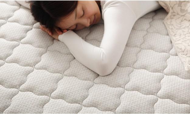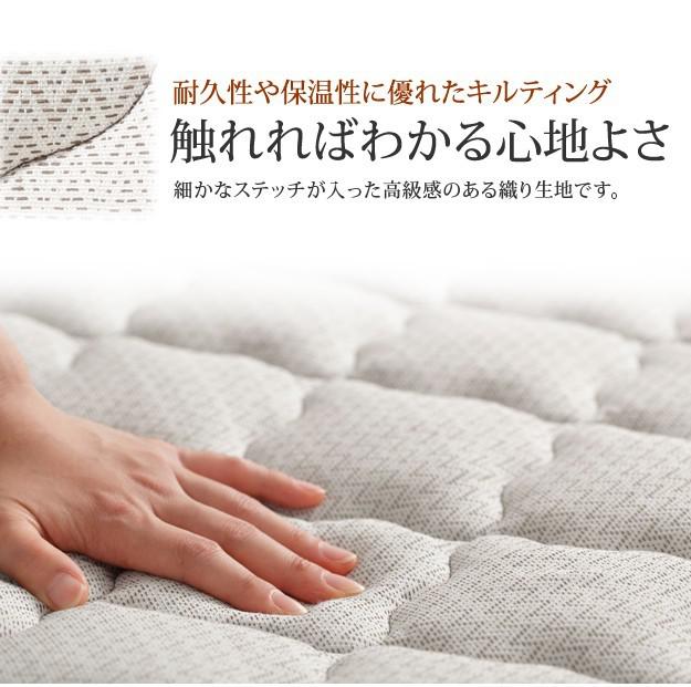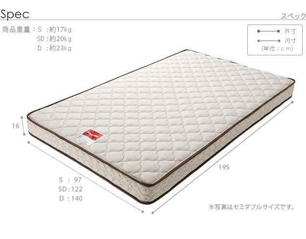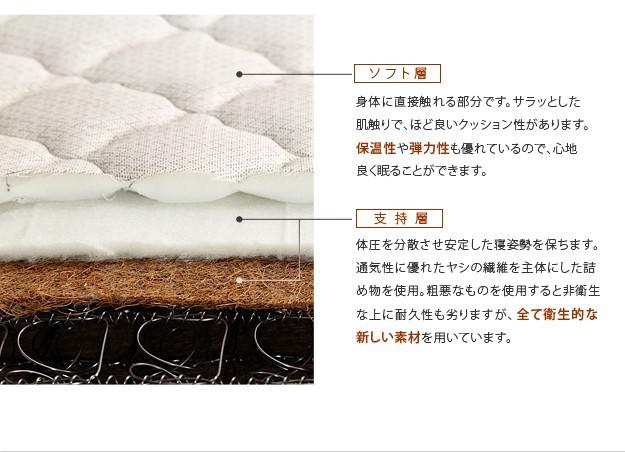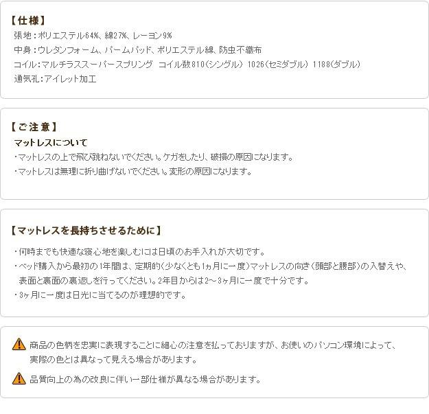 材質:側地-ポリエステル64%・綿27%・レーヨン9%、中身-ウレタンフォーム・パームパッド・ポリエステル綿・防虫不織布、コイル-マルチラススーパースプリング・コイル数1026、通気孔-アイレット加工