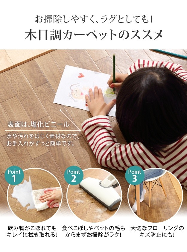 あす着 ダイニングラグ チェアマット デスク 拭ける 防水 撥水 はっ水 木目 フローリング ビニール ウッドカーペット 防音 大判 大きめ おしゃれ 北欧 夏 子供 薄型 ペット 老犬 ベビー フロア 床保護 2畳 正方形 200×200 床暖房 厚手 ブラウン 茶色 ナチュラル ホワイト 白