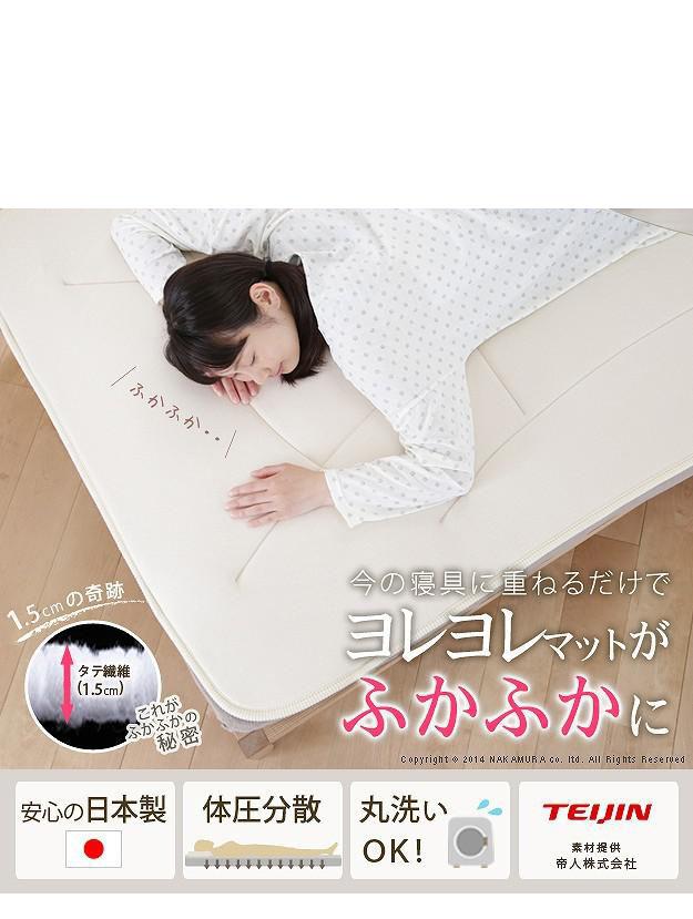 お手持ちのマットレスや敷き布団に重ねるだけで寝心地UP。ふかふか敷きパッドコンフォートプラスシングル。高反発で体圧分散性が高いクッション材(特殊な構造の繊維テイジンV-Lap)が腰の沈み込みを防ぎ、寝姿勢を強力サポート☆軽くて薄いのでお洗濯や持ち運びの際も便利です。アイボリーは柔らかい肌触りのスムースニット、ブラウン 茶色 は湿気を逃し通気性の良い立体メッシュ。2タイプの側生地を用意しました。