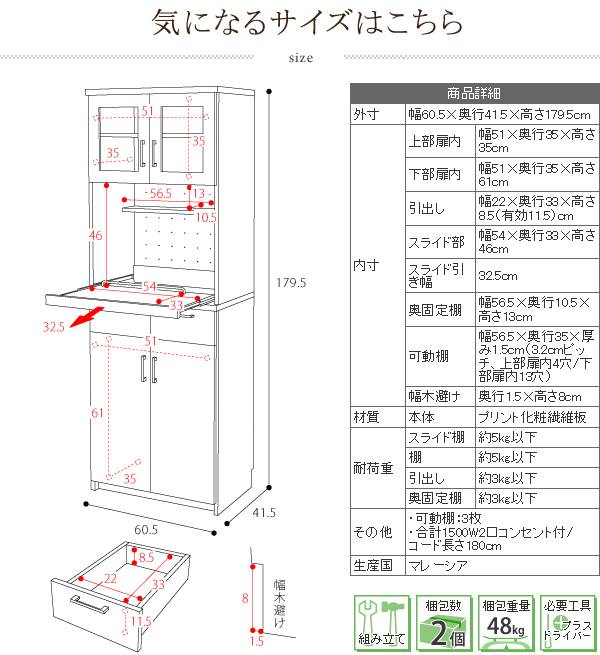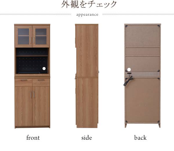 食器棚 おしゃれ 北欧 激安 キッチン 収納 棚 ラック 木製 レンジ台 キッチンボード カップボード ハイタイプ 大容量 約 幅60 スライド 炊飯器置き場 引き出し カントリー アンティーク コンセント