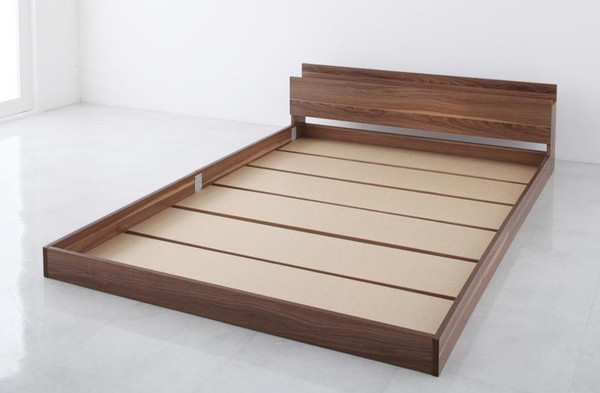 ベッド ダブル ローベッド ロータイプ 低い フロアベッド 低床 棚 ラック 宮付き ヘッドボード 枕元 携帯 スマホ ティッシュ メガネ リモコン コンセント 充電 フレーム 北欧 おしゃれ モダン ヴィンテージ メンズ