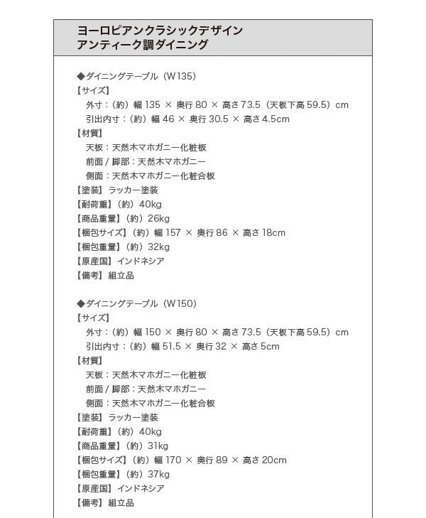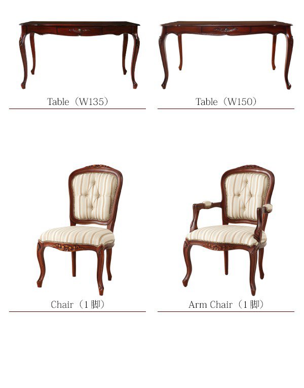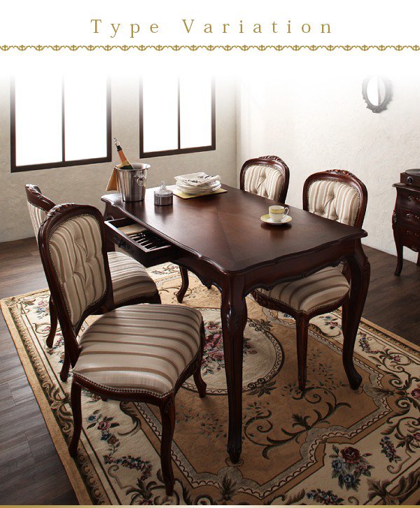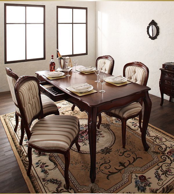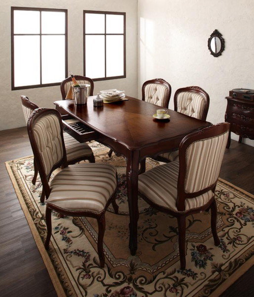 ダイニングセット 7点 7点セット 6人用 ヨーロピアン アンティーク ダイニング7点セット (幅150+チェア×6) 【 ブラウン 茶色 】