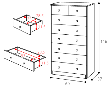 [外寸]幅60.0×奥行37.0×高さ116.0cm