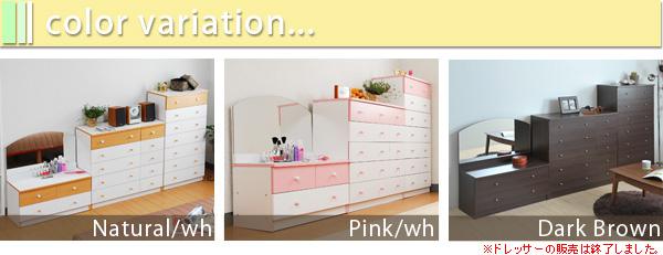 かわいいピンクとさわやかなナチュラル、シックなダークブラウンをご用意。引出には衣類から小物までたっぷり収納。