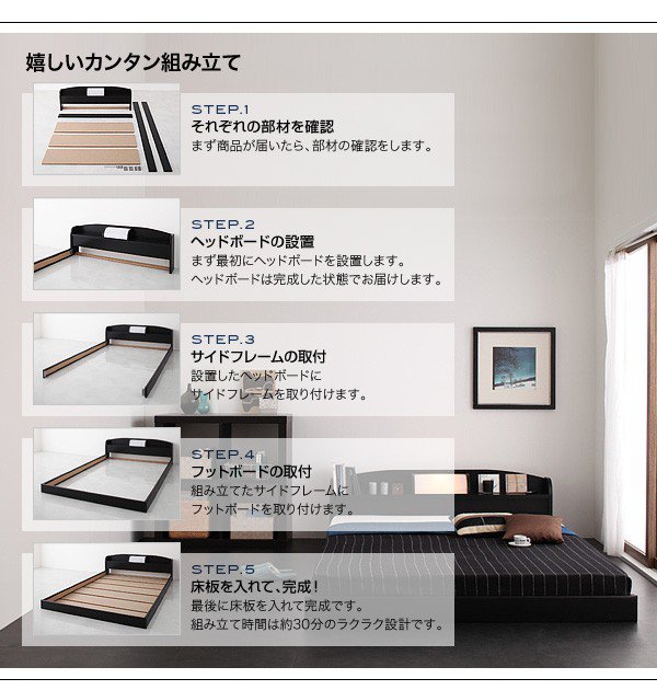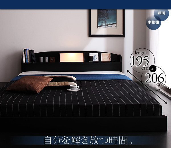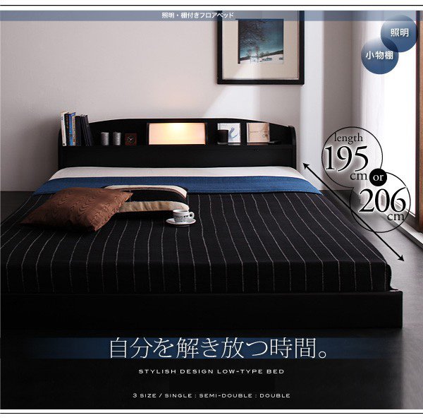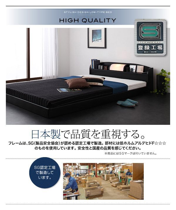 ベッド シングル ローベッド ロータイプ 低い フロアベッド 低床 宮付き ヘッドボード 枕元 棚 携帯 スマホ ティッシュ メガネ リモコン ラック ライト 読書 おしゃれ モダン メンズ デザイナーズ 照明 読書灯 ポケットCマットレス付き 普通丈