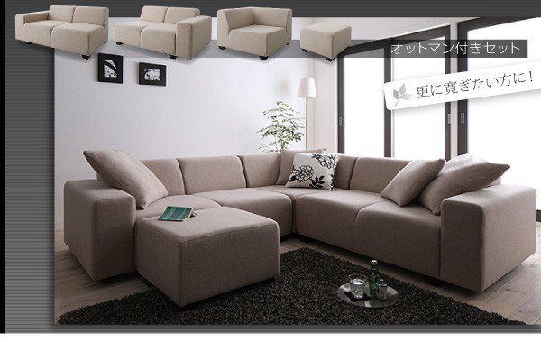 コーナーソファ コーナーソファー L字 l字型 l型 オットマン スツール 足置き 5人 五人 6人 六人 おしゃれ 布 ファブリック 北欧 カフェ 応接 リビング カウチソファー ( コーナーセット オットマン付 ベージュ )