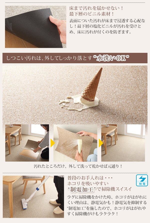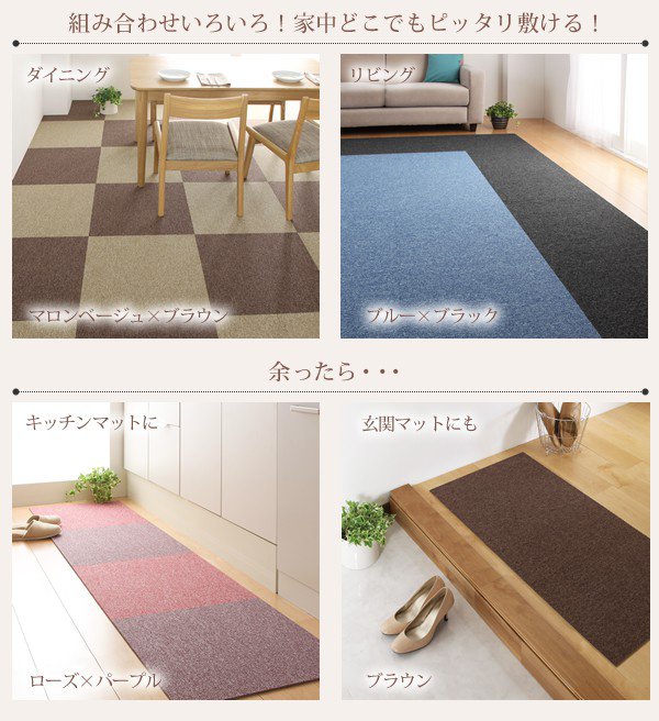 ラグ カーペット じゅうたん ラグマット ダイニングラグ 同色24枚 3畳 ブラウン 茶色 おしゃれ 洗える 床暖房対応 防音マット 厚手 子供
