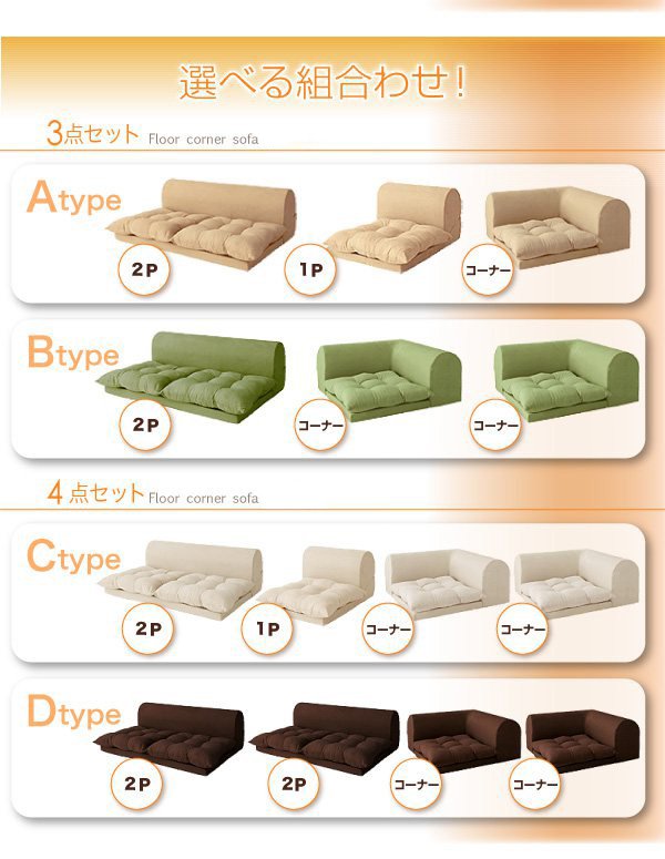 フロアコーナーソファ Aタイプ アイボリー/