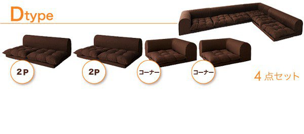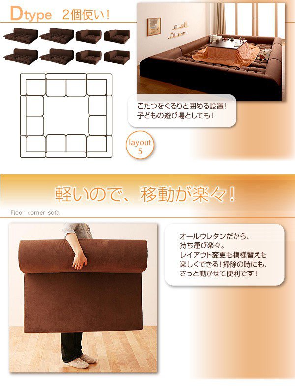 フロアコーナーソファ Dタイプ ブラウン/