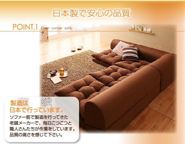 フロアコーナーソファ Aタイプ ブラウン/