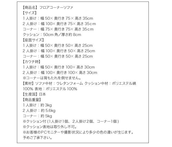 フロアコーナーソファ Dタイプ アイボリー/
