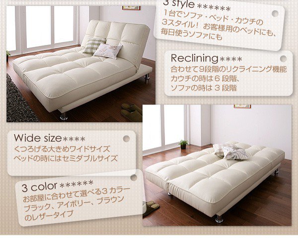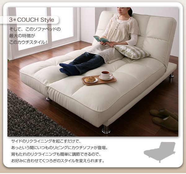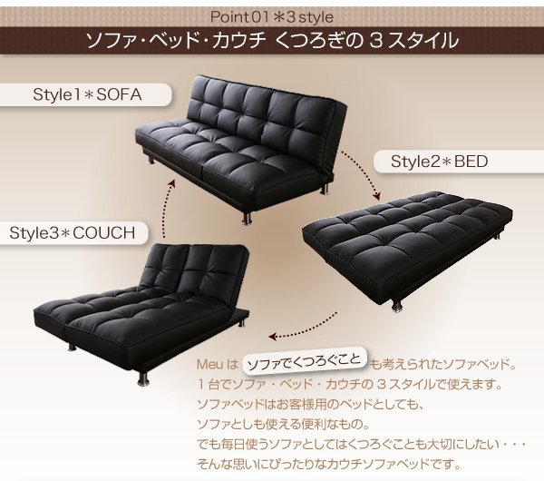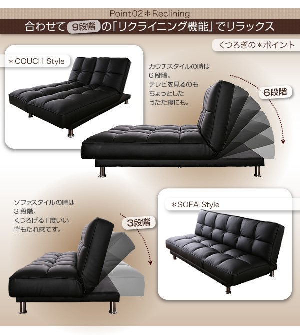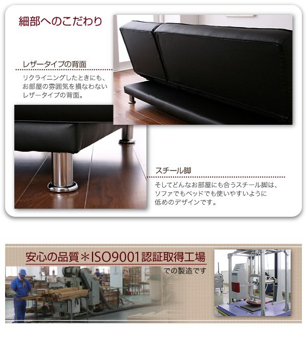 ソファー ソファ 3人掛け 三人掛け おしゃれ 北欧 カフェ リビング ソファーベッド ソファベッド 一人暮らし 座椅子 ローソファ リクライニング レザー 革 合皮 ( カウチソファベッド ブラック 黒 )