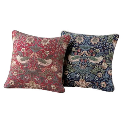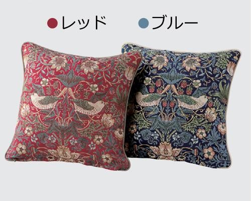 1882年にウィリアム・モリスによって製作され、以来不動の人気を誇るデザイン「いちごどろぼう」の生地を使用した背当てクッションカバーです。