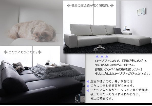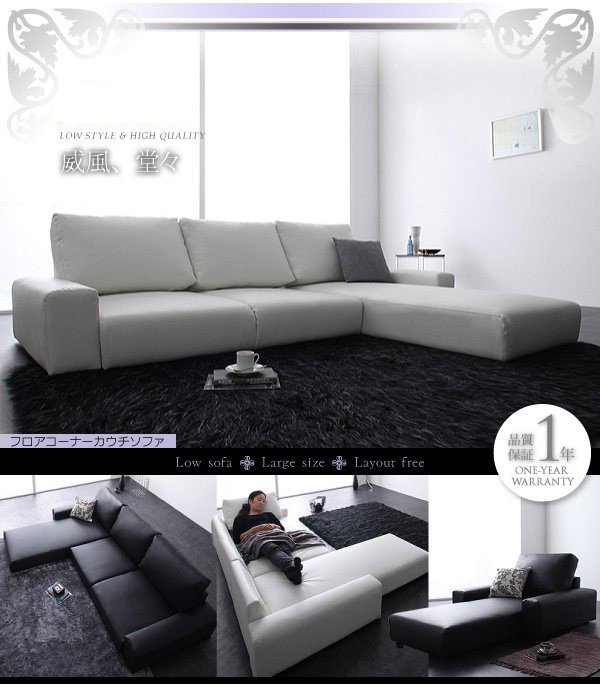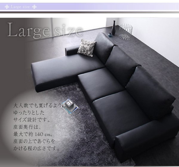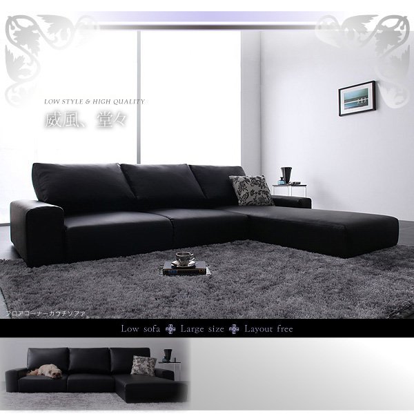 コーナーソファ コーナーソファー L字 l字型 l型 オットマン スツール 足置き 3人 三人 4人 四人 高級 おしゃれ 応接 リビング カウチソファー 座椅子 ローソファ レザー 革 合皮 こたつ ( フロアコーナーカウチ ブラック 黒 )