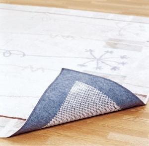 マットやカーペットの裏面の4辺と中心部分に貼ることで効果を発揮します。