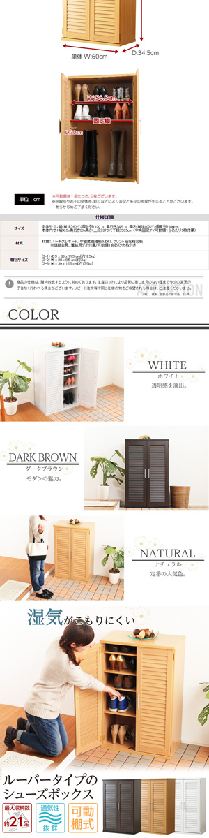 通気性抜群!ルーバー式シューズボックス【幅60cm・単品】(下駄箱・玄関収納)