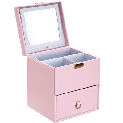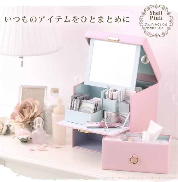 あす着 メイクボックス コスメボックス 持ち運び 化粧品 収納 2段 ドレッサー 一面鏡付き 小さめ 子供 女の子 大容量 多機能 引き出し 蓋付き アンティーク おしゃれ コンパクト 化粧台 姫系 安い 可愛い 鏡台 軽い プリンセス スリム ミニ プロ仕様 仕切り ピンク ベージュ