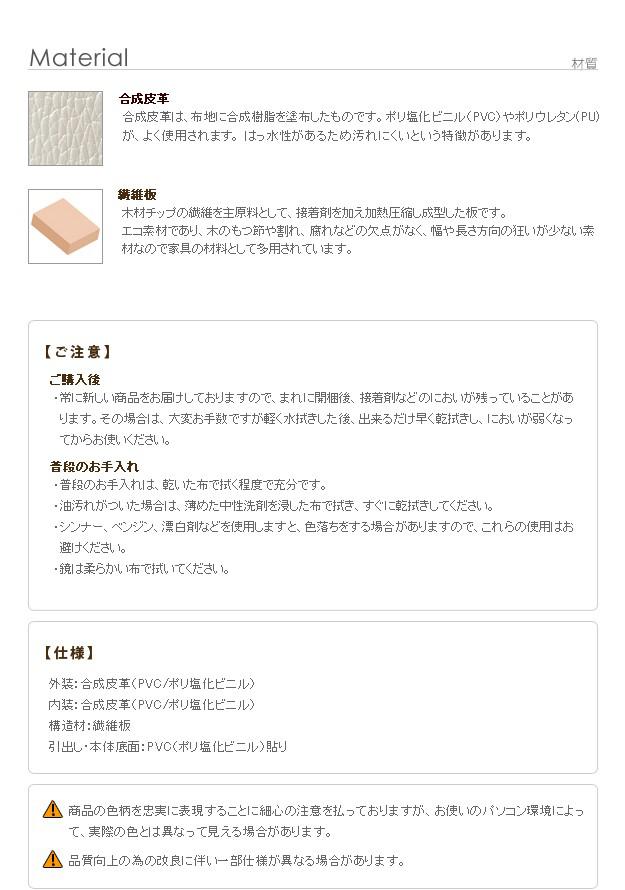 材質:外装-合成皮革、構造材-中質繊維板、内装-PVC(ポリ塩化ビニル)貼り