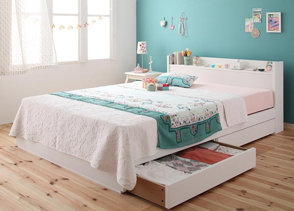【国産ポケットコイルマットレス付き】ダブル ホワイト/