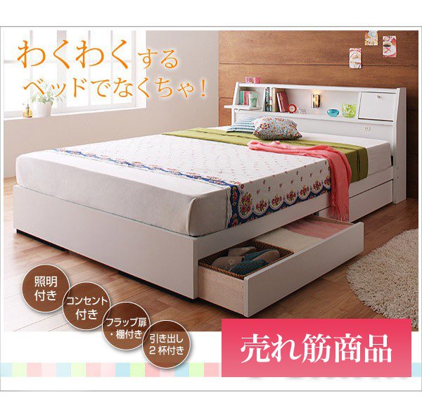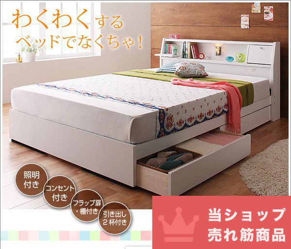 【ポケットコイルマットレス付】ダブル ホワイト/