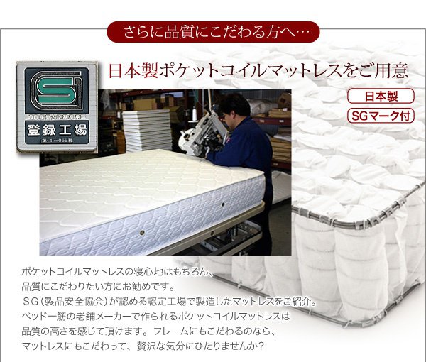 【ラテックス入り国産ポケットコイルマットレス付】セミダブル ホワイト/
