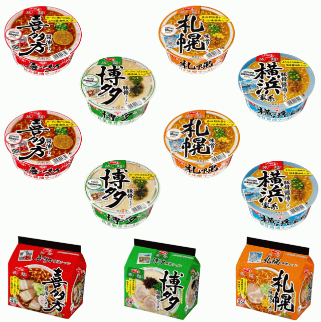 サッポロ一番 カップ麺 袋麺 セット。喜多方ラーメン 博多ラーメン 札幌ラーメン 横浜ラーメン。