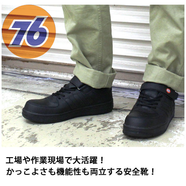 安全靴 メンズ セーフティシューズ スニーカー 幅広 作業靴 ワイズ 3E 作業 仕事 現場 物流 鉄製 先芯 カジュアル 安全 シンプル ベルクロ 76Lubricants 76-3036 働く現場