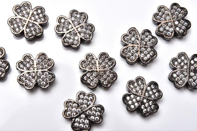 | 特徴・意味 | クローバーの形をした可愛らしいメタルパーツです。ハート型の葉の表面にはごく小さなカットストーンが埋め込まれていて揺れる度キラキラと輝きます♪ |