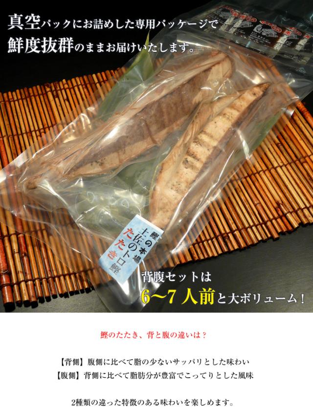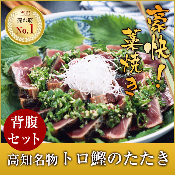 【商品説明】土佐名産トロ鰹のたたき(背腹セット)です。脂の乗った鰹を厳選しております。