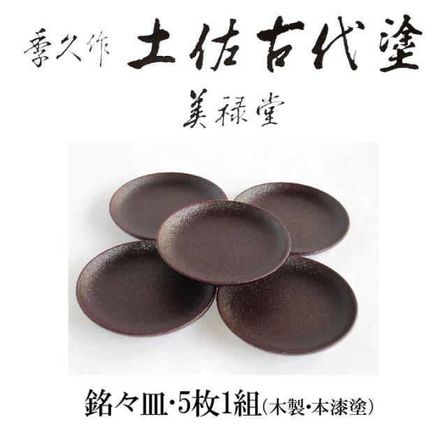 季久作「土佐古代塗」銘々皿・5枚1組(木製・本漆塗)土佐古代塗 美禄堂/高知 伝統工芸 漆器 特産品 手造り