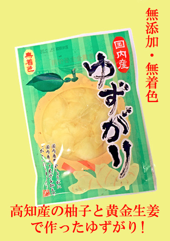 ゆずの香りが爽やかな美味しい「がり」ができました。安心してお召し上がりいただけるよう