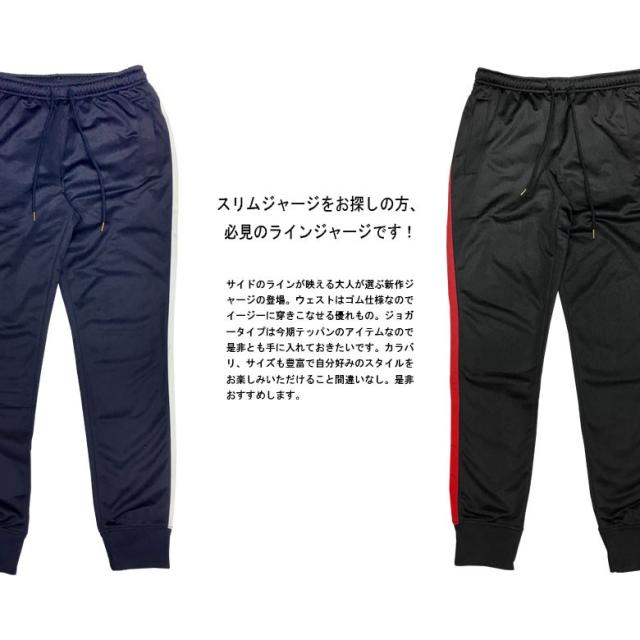 【閉店セール】ラインサイドラインスリム ジョガーパンツ ジャージパンツ ジョガーパンツ スリムジャージ 017755 019355 ジャージパンツ ライン サイドライン hosomi ジョガーパンツ スリムジャージ ブラック ネイビー ビター M L LL パンツ