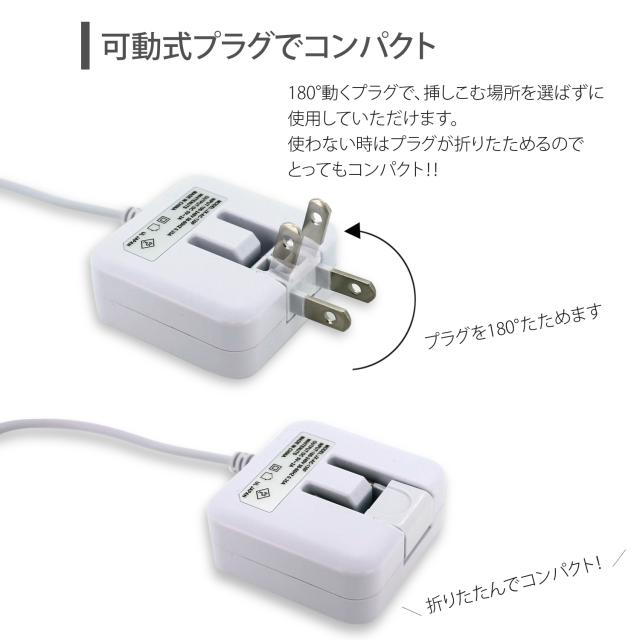 ・ACプラグは180度調整が可能で、コンセントの配置を気にせずにご使用いただけます。