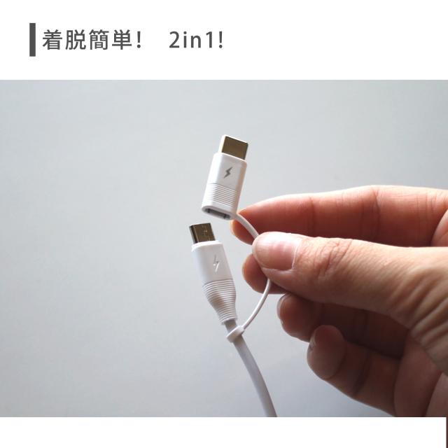 ・micro USBにアダプターをかぶせるだけでUSB Type-Cにも使える便利な2in1のケーブルです。