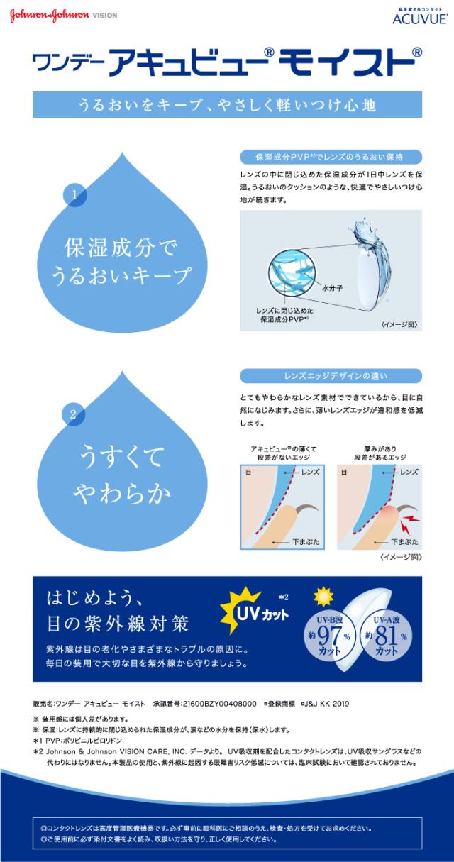 ワンデーアキュビューモイスト 1箱 (90枚入り) ジョンソン・エンド・ジョンソン 1日使い捨て UVカット コンタクトレンズ 1day 送料無料 クリアコンタクト one day acuvue moist johnson & johnson
