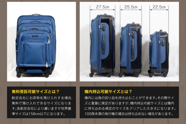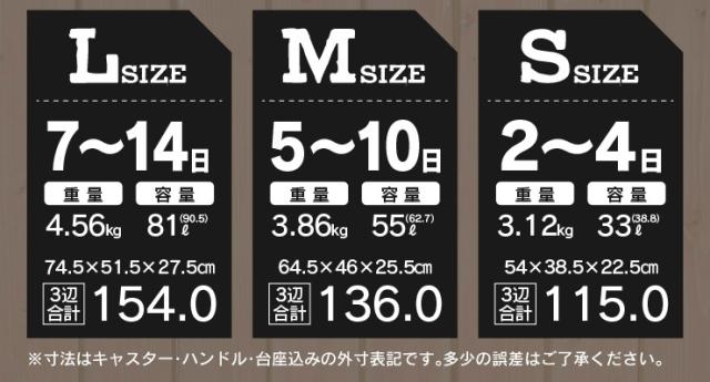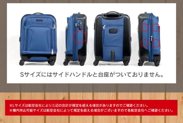 ※Lサイズは航空会社により三辺の合計が規定を超える場合がございますのでご確認くださいませ。