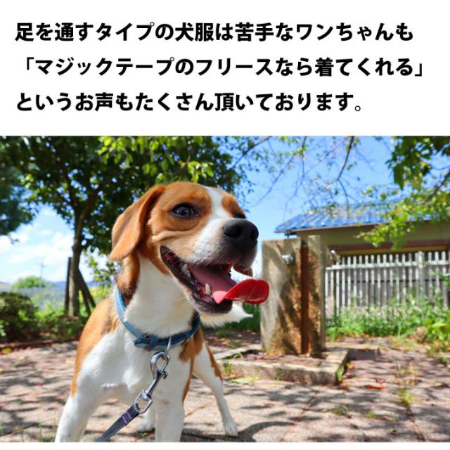 足を通すタイプの犬服は苦手なワンちゃんも「マジックテープのフリースなら着てくれる」というお声もたくさん頂いております。