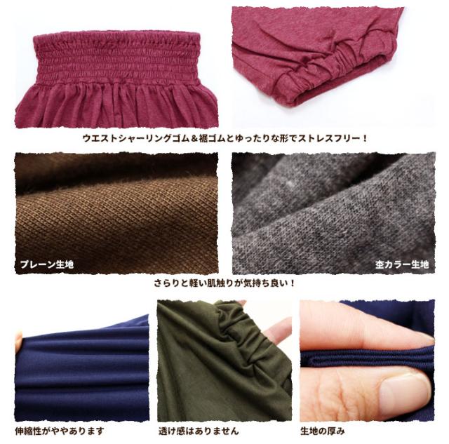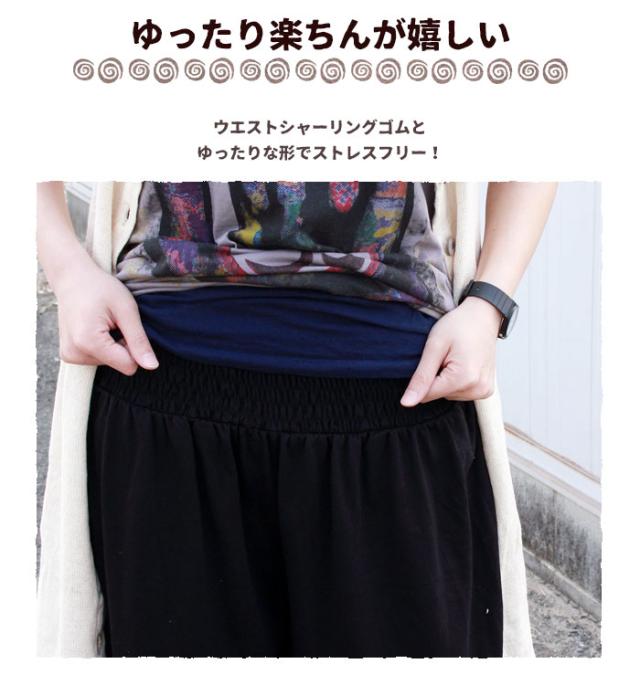 ウエストシャーリングゴムとゆったりな形で