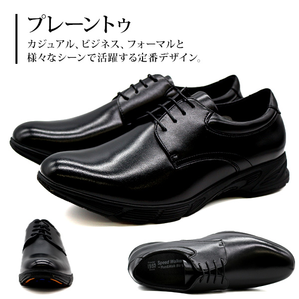 ビジネスシューズ 革靴 メンズ 黒 ブラック 走れる 走る 幅広 3E 軽量 軽い 防滑 滑らない 滑りにくい 仕事 疲れない 疲れにくい 通勤 就活 冠婚葬祭 紳士靴 シンプル おしゃれ クッション 蒸れない 通気性 メッシュ プレーントゥ ローファー Speed Walker RW-760
