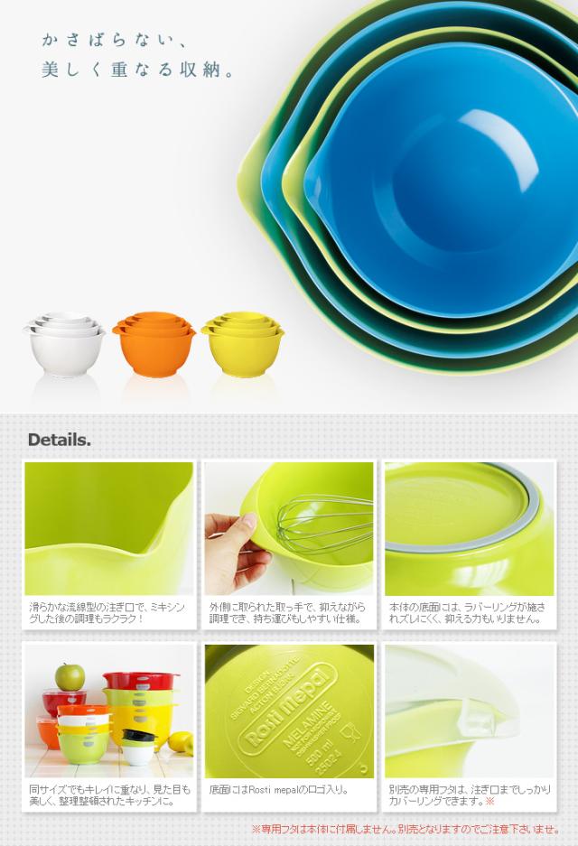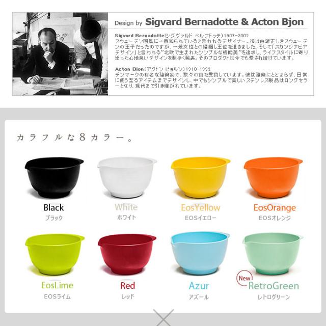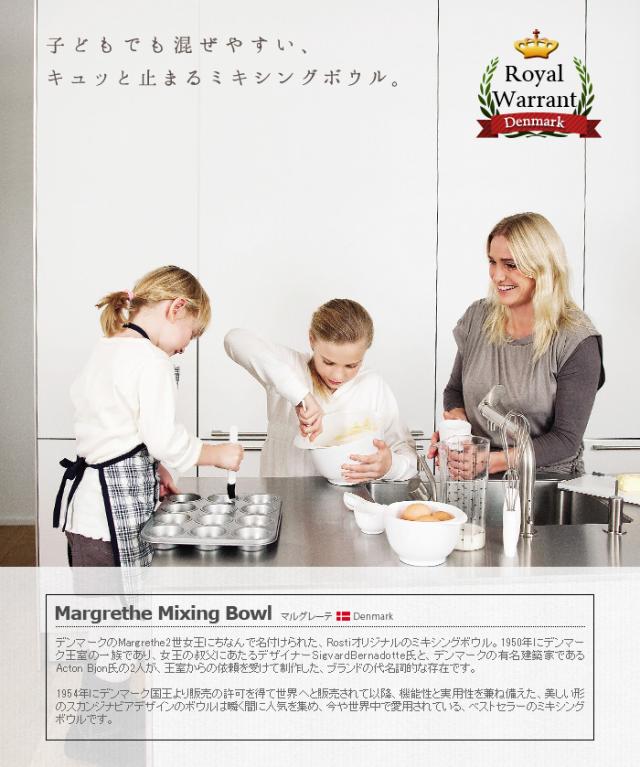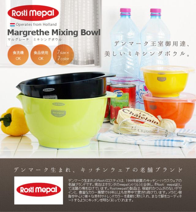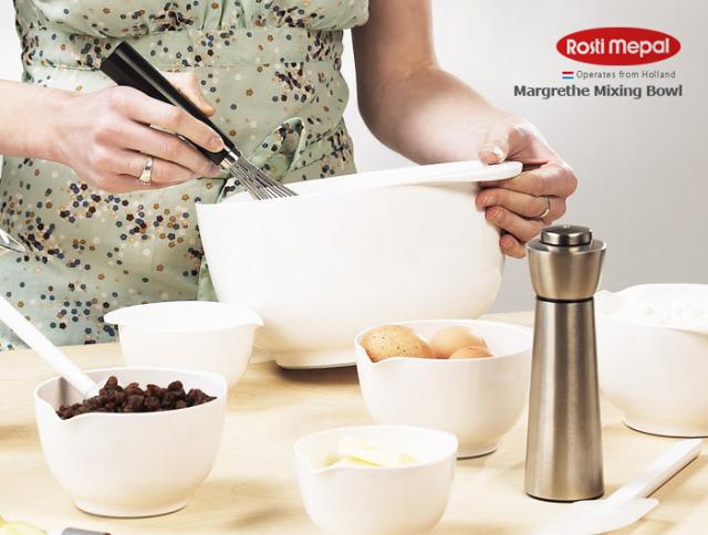 オシャレなキッチンツールで有名な『Rosti mepal』から、シンプルで使いやすいミキシングボウルシリーズ”Margrethe(マルグレーテ)”が登場♪底面のラバーリングでボウルの固定に力がいらず、ラクーにミキシングできちゃいます☆更に、ボウルのフチに注ぎ口が付いてるので調理に大活躍!専用のフタは、注ぎ口までしっかりカバーするので保存もOK。サイズ違いで揃えると、美しく重なるので収納場所にも困りません♪