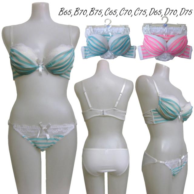 【メール便送料無料】ボーダーブラジャー&ショーツ(B65/B70/B75/C65/C70/C75/D65/D70/D75)