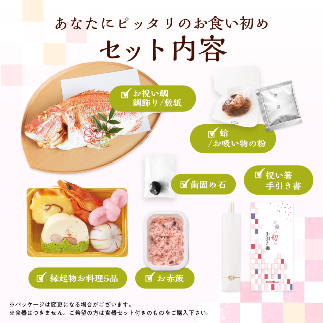 儀式の手順などを詳しく解説した手引き書も付いているので、初めてのお食い初めでも安心です。