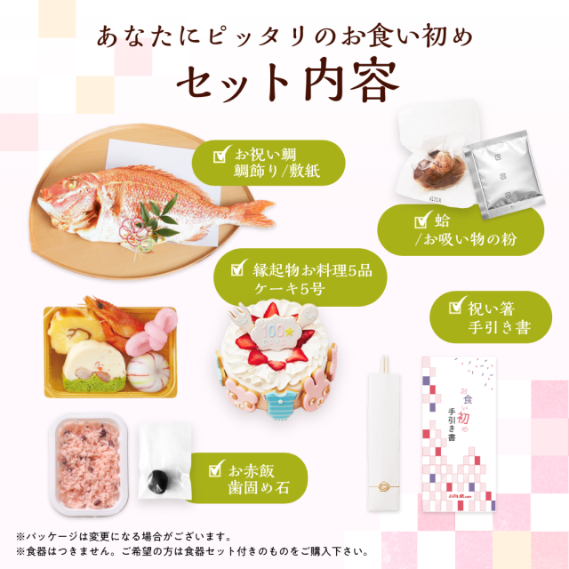 - 3人目の子どもで、初めてお食い初めパーティーしました?? 大人数でのパーティーだったので、鯛とケーキのサイズUPしての注文でしたが、サイズUPして良かったです♪ みんな、鯛の大きさにビックリ?? ケーキはつけるかつけないか迷いましたが、ついている方がやはり豪華になるし見映えします??笑 どれもみんな、味も美味しかったのでオススメです♪♪ 北海道なので、赤飯に甘納豆があるのが嬉しかったです?? 次また頼めることがあれば頼みたいと思える商品で、とてもオススメです??