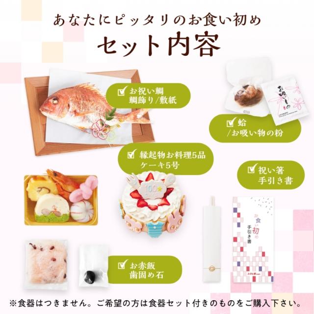 【レビュー特典】お食い初めセット【花むすび・えん お食い初め膳 -はれももかプティ-《ケーキ5号》】これ1つで簡単本格お食い初め 国産天然真鯛 料理 歯固め石 出産祝い お正月 ギフト