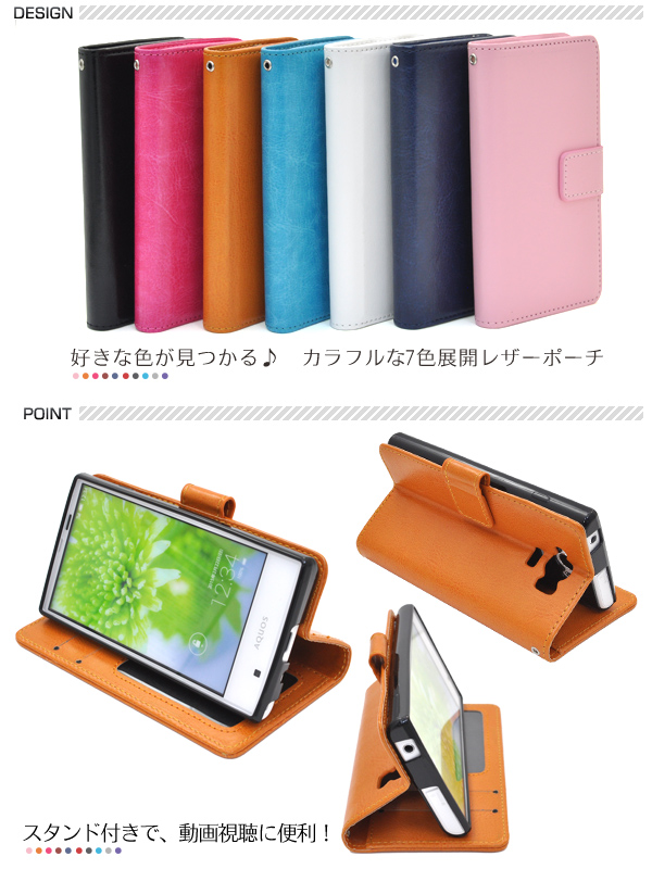 アクオス au エーユー シャープ sharp スマホカバー スマホケース 動画視聴 画面保護 保護カバー シンプル きれい 白 黒 オレンジ ビビットピンク ピンク 青 ブルー ネイビー 紺色 紺 かわいい メンズ カード入れ おしゃれ 保護ケース 保護カバー スマホカバー