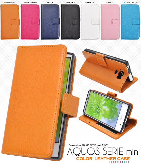 スマホケース 手帳型 AQUOS SERIE mini SHV31用 横開き シンプル レザーケース 保護ケース アクオス セリエミニ au エーユー 合皮 無地 黒 青 橙 白 水色 ピンク スマホカバー 保護ケース 人気