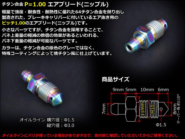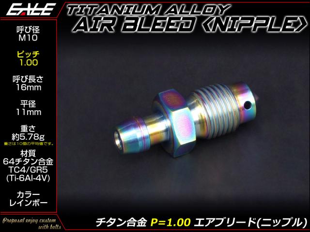 エアブリード M10 P1.00 チタン エア抜き ニップル レインボー JA221